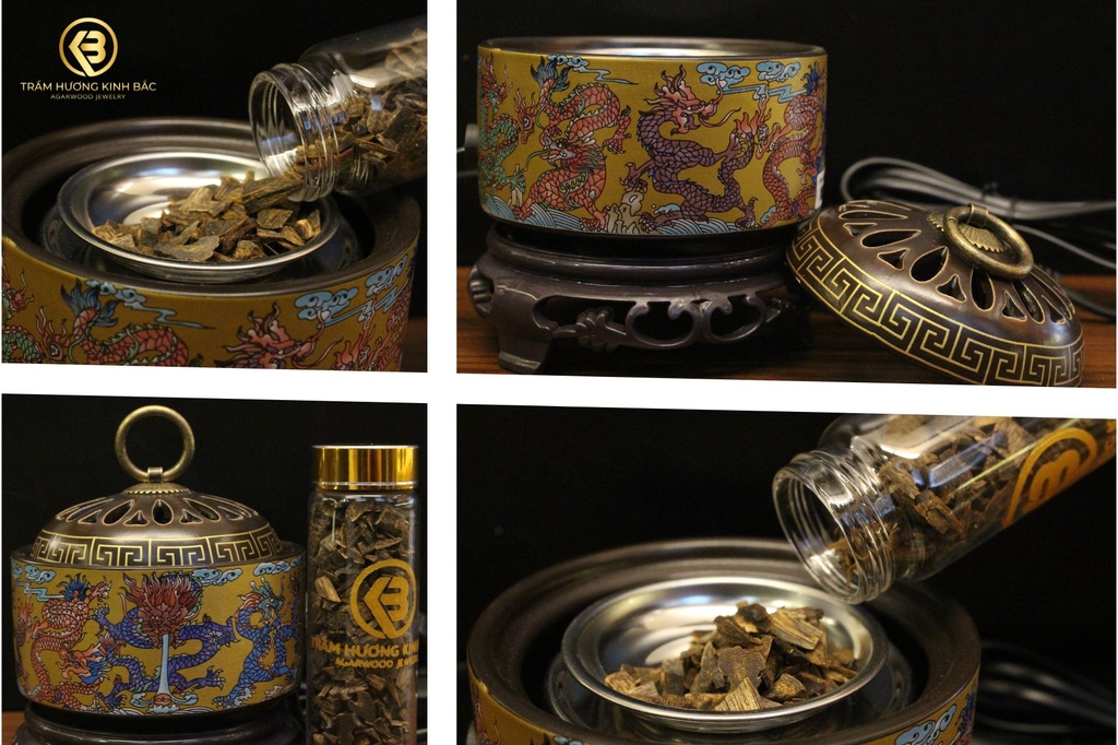 - Sử dụng với: Bột, vụn, các loại nhang trầm ( các loại gỗ quý,… )