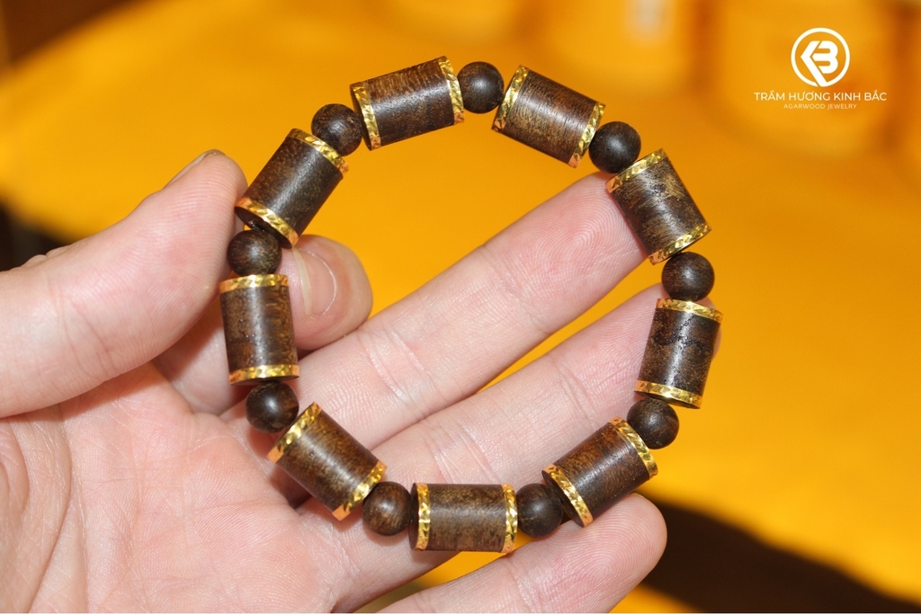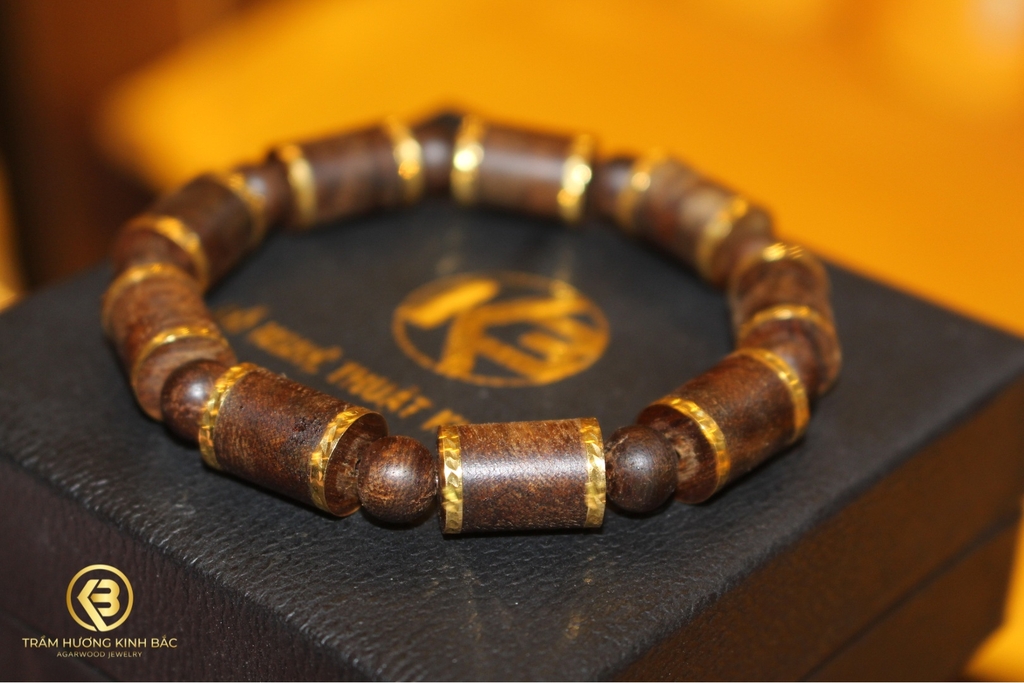 Vòng Tay Trầm Hương Trụ trúc đơn bọc vàng – Trầm Indo VIP 40 năm là sự kết hợp độc đáo
